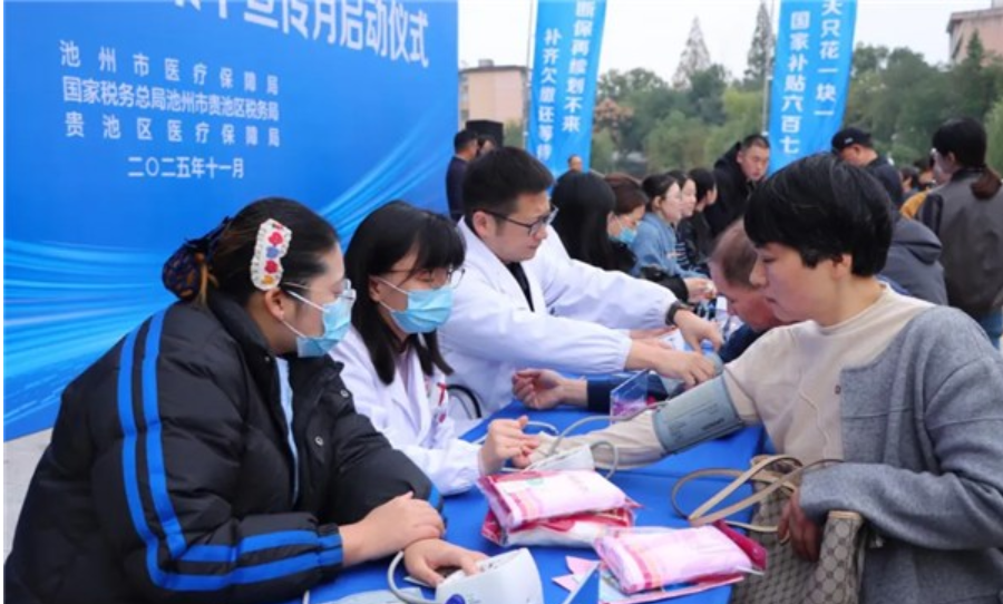 贵池启动全民参保集中宣传月活动发表时间:2025-11-11 17:00 11月4日,市区两级联合在池州市第二人民医院新门诊大楼前举办全民参保集中宣传月启动仪式。市政府副秘书长章小金,市医保局党组书记吴亚虎,市医保局局长王师琴,区委常委、副区长汪赛荣到场指导。