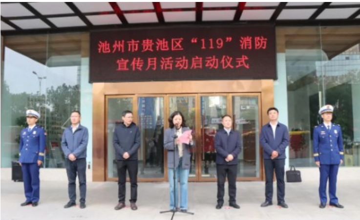 贵池区“119”消防宣传月活动启动发表时间:2025-11-11 17:02 11月3日,2025年贵池区“119”消防宣传月活动在区消防救援大队拉开帷幕。区委常委、常务副区长严贞宣布活动启动并致辞。