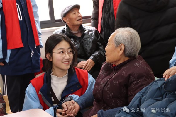 城北社区相关负责人表示,近年来志愿者队伍不断壮大,有许多像潘江英这样的老年志愿者积极发挥余热,为志愿事业添砖加瓦,也激励带动了更多人投身志愿服务,共建温暖和谐社区。 青暖“耆”迹,学生志愿队叩响幸福门 3月5日上午,池阳街道清风社区的池州市综合养老服务中心内洋溢着欢声笑语,18名来自池州市第三中学的学生志愿者走进了养老服务中心,为老年人送去问候与关怀。